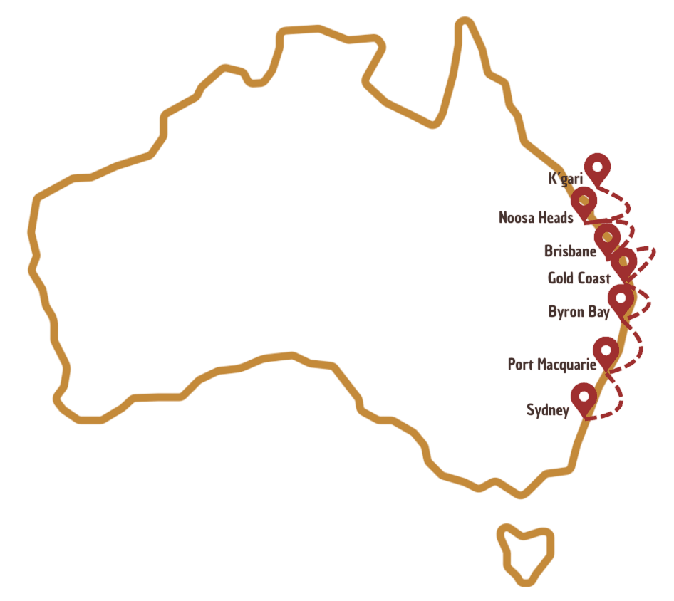 Brisbane → Noosa → Rainbow Beach → K’gari