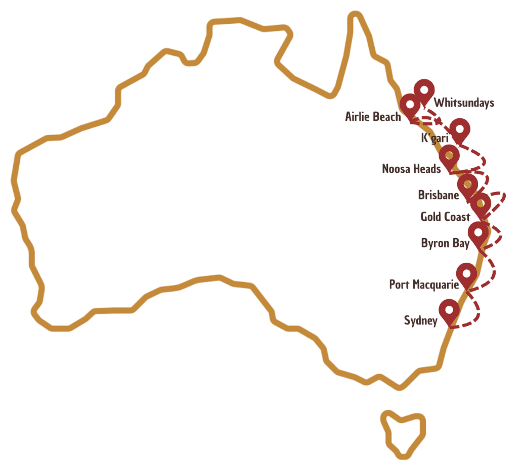 Itinéraire détaillé sur la côte Est de l’Australie (Sydney à Cairns)